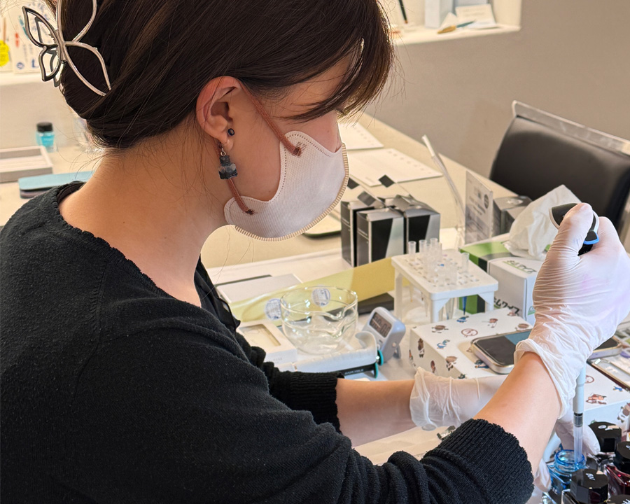 お客様の好みにあった独自の色を調合するインクブレンダーとして活躍中。