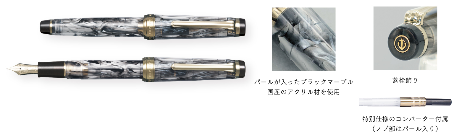 今回、パールブラックに付属するコンバーターはノブの樹脂にパールを加えた仕様となっております。