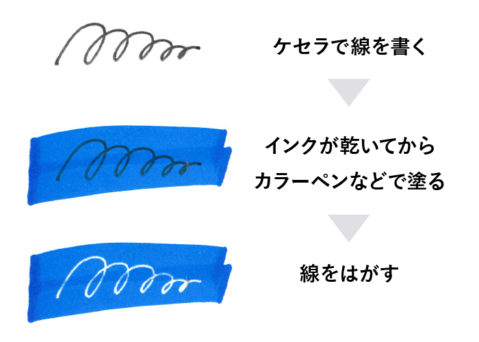 乾いてからカラーマーカーや他のインクを重ねると白抜きができ、多彩なマーキングや、着彩表現が可能。